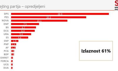 Spektrum Analitika: DPS podržava 26,3 odsto građana, PES 20,2, NSD 15,1...