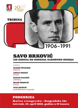 Matica crnogorska organizovaće u četvrtak tribinu pod nazivom „Savo Brković – 120 godina od rođenja narodnog heroja“, koja će biti održana u njenim prostorijama, u Beogradskoj ulici 24c u Podgorici, s početkom u 19 časova.