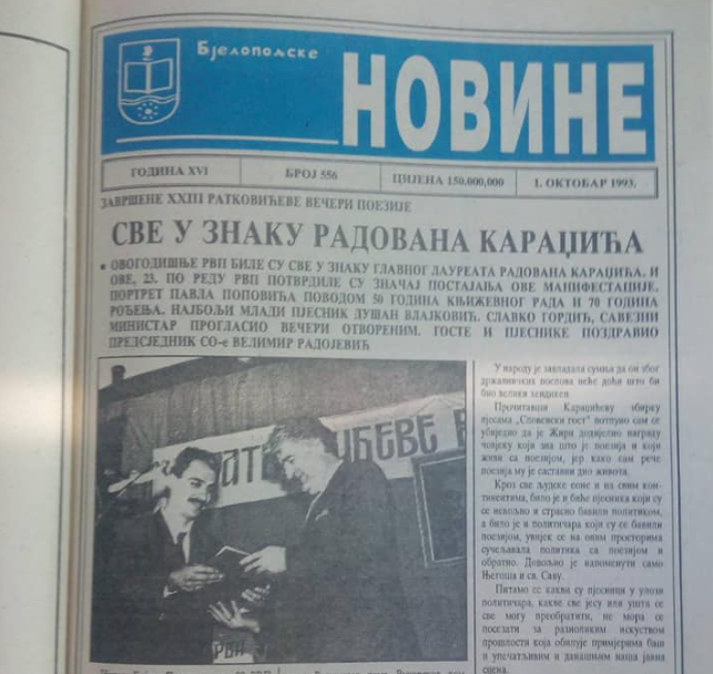 - Podsjećamo da smo 26. juna uputili inicijativu ovoj ustanovi da se Karadžiću oduzme nagrada za poeziju “Risto Ratković”, dodijeljena ratne 1993. godine. Dočekom od strane tadašnjeg rukovodstva u Crnoj Gori faktički mu je pružena političku legitimaciju za ulogu u ratu u Bosni i Hercegovini- podsjetili su u ime nevladinih organizacija i građaskih aktivista Daliborka Uljarević, Centar za građansko obrazovanje (CGO), Tea Gorjanc Prelević, Akcija za ljudska prava (HRA), Ervina Dabižinović, Centar za žensko i mirovno obrazovanje ANIMA, Demir Ličina, Udruženje “Štrpci – Protiv zaborava”, Velija Murić, Crnogorski komitet pravnika za ljudska prava, Dina Bajramspahić, građanska aktivistkinja i Jovana Marović, građanska aktivistkinja