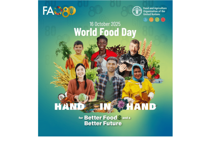 Organizacija za hranu i poljoprivredu Ujedinjenih nacija (FAO) ove godine obilježava osam decenija postojanja, a Svjetski dan hrane 2025. posvećen je temi „Ruku pod ruku – preko granica, sektora i generacija“, koja ističe važnost inkluzivnih i održivih partnerstava u borbi protiv gladi i za jačanje globalne bezbjednosti hrane.