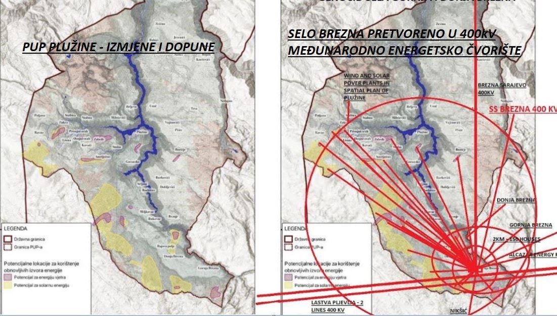 - Uprkos faktičkom stanju na terenu, CGES i njihov konsultant ENOVA su, kako navode, u projektnoj doklumentaciji na osnovu koje je EBRD odobrila kreditna sredstva za ovaj projekat, naveli da u krugu od 2 km od planirane lokacije trafostanice nema nijedna kuća niti poslovni objekat. Mještani se bore i protiv kompanije Alcazar Energy koja takođe namjerava da postavi dalekovod preko njihovih privatnih imanja za svoj projekat vjetroelektrane Bijela u Šavniku, i do sada su, kako navode iz GI "Spasimo Brezna" načinili niz nezakonitih radnji, uključujući nezakoniti desant privatnih geometara na imanja mještana bez njihovog znanja i saglasnosti - piše u saopštenju.