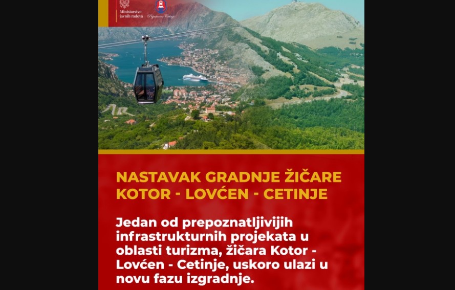 Jedan od prepoznatljivih infrastrukturnih projekata u oblasti turizma žičara Kotor - Lovćen - Cetinje, uskoro ulazi u novu fazu izgradnje, saopšteno je iz Ministarstva javnih radova.