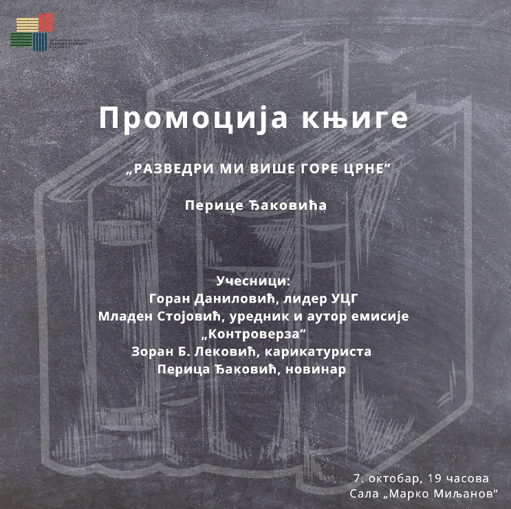 U Narodnoj biblioteci "Radosav Ljumović" koja nosi ime antifašiste i revolucionara biće predstavljena knjiga ratnog huškača Perice Đakovića "Razvedri mi više Crne Gore" koja govori o povratku kapele Karađorđevića na vrh Lovćena.