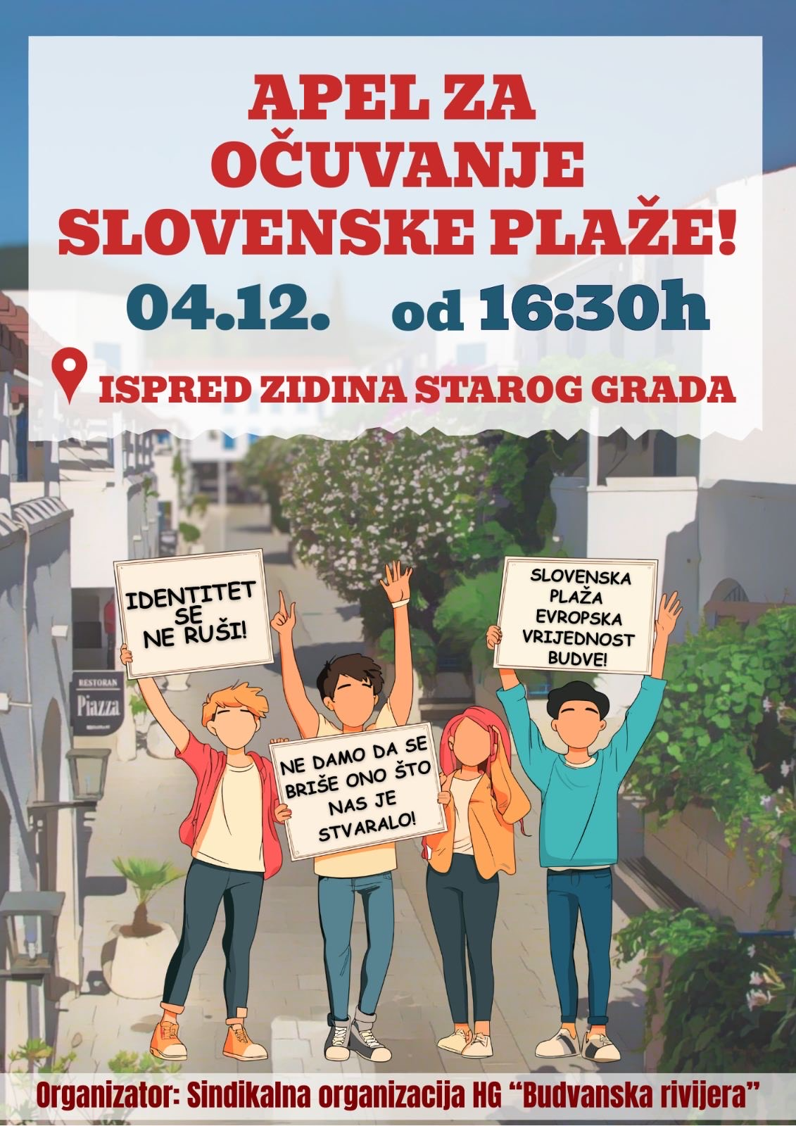 Protest Sindikalne organizacije Budvanske rivijere u četvrtak: ''Slovenska plaža evropska vrijednost Budve''
