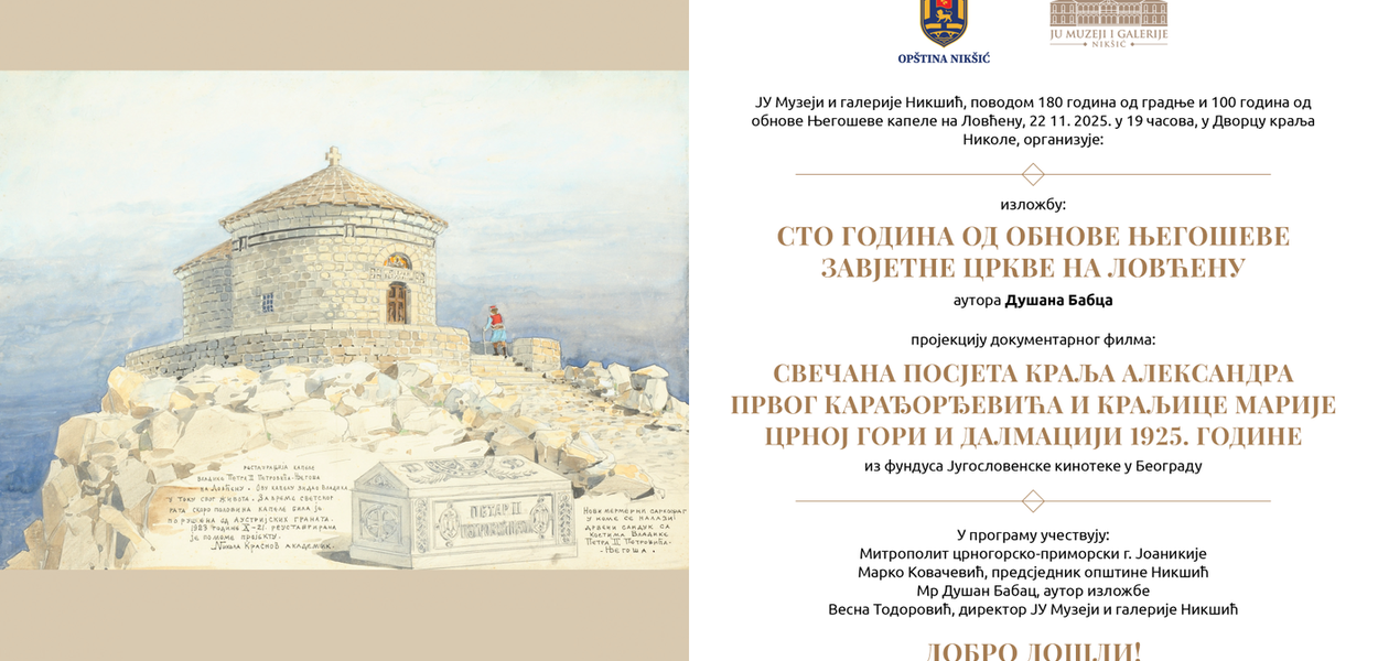U atmosferi, kako navodi, već brojnih incidenata koji “stižu iz kuhinja kreatora srpskog sveta”, pojavljuje se i novi. Javna ustanova Muzeji i galerije Nikšić najavila je izložbu pod nazivom „Sto godina od obnove Njegoševe zavjetne crkve na Lovćenu“, te projekciju dokumentarnog filma „Svečana posjeta kralja Aleksandra Prvog Karađorđevića i kraljice Marije Crnoj Gori i Dalmaciji 1925.“. Događaj će, kako je saopšteno, biti organizovan „povodom 180 godina od gradnje i 100 godina Njegoševe kapele na Lovćenu“.