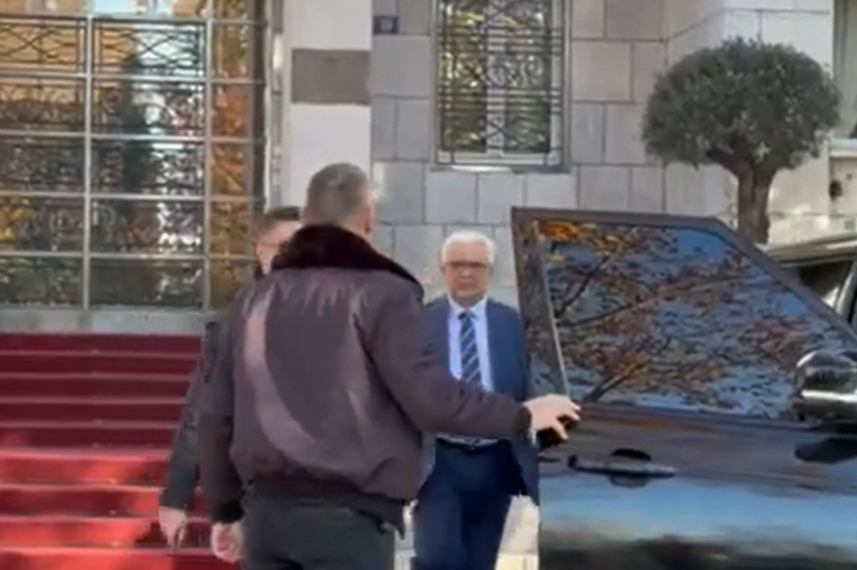 Mandić se uputio ka službenom automobilu, potpuno ignorišući ženu koja stoji sa transparentom i apeluje na državni vrh.