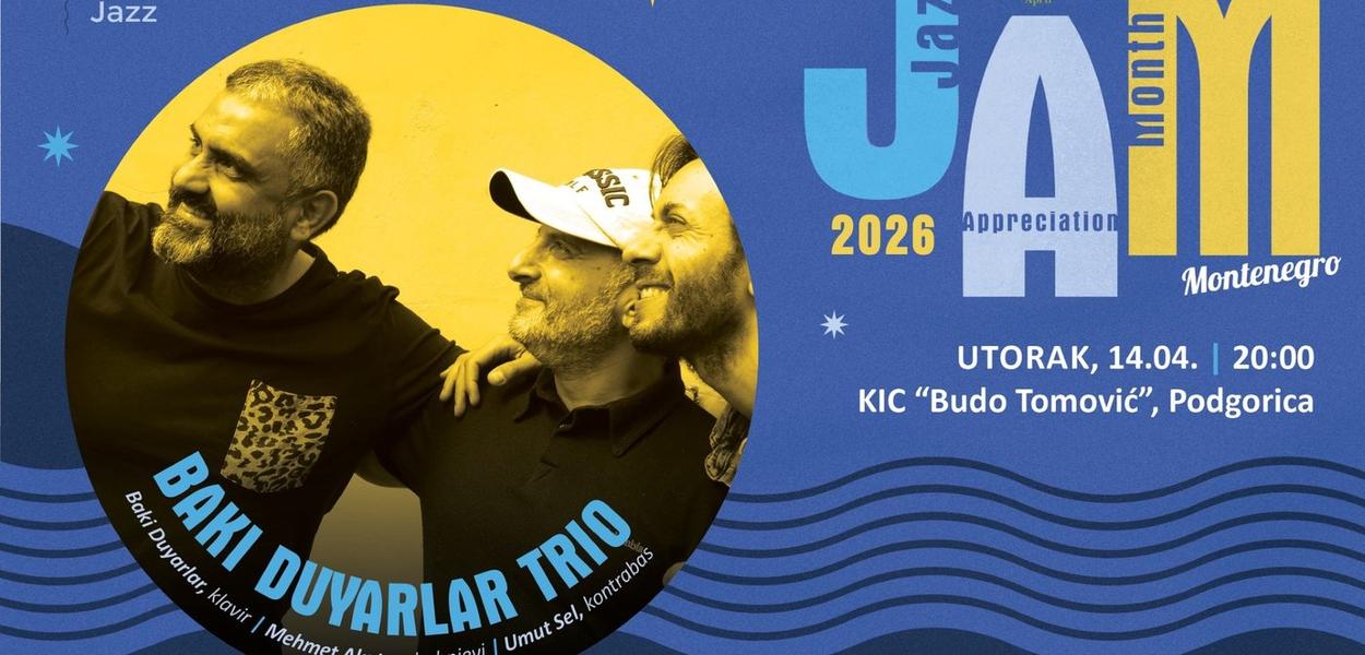 Turski džez trio pod vođstvom istaknutog pijaniste i kompozitora Bakija Dujarlara premijerno će nastupiti u Crnoj Gori u okviru festivala „Mjesec poštovanja džeza u Crnoj Gori / Jazz Appreciation Month in Montenegro – JAM 2026“, u utorak, 14. aprila, u velikoj sali KIC-a „Budo Tomović“ u 20 časova.
