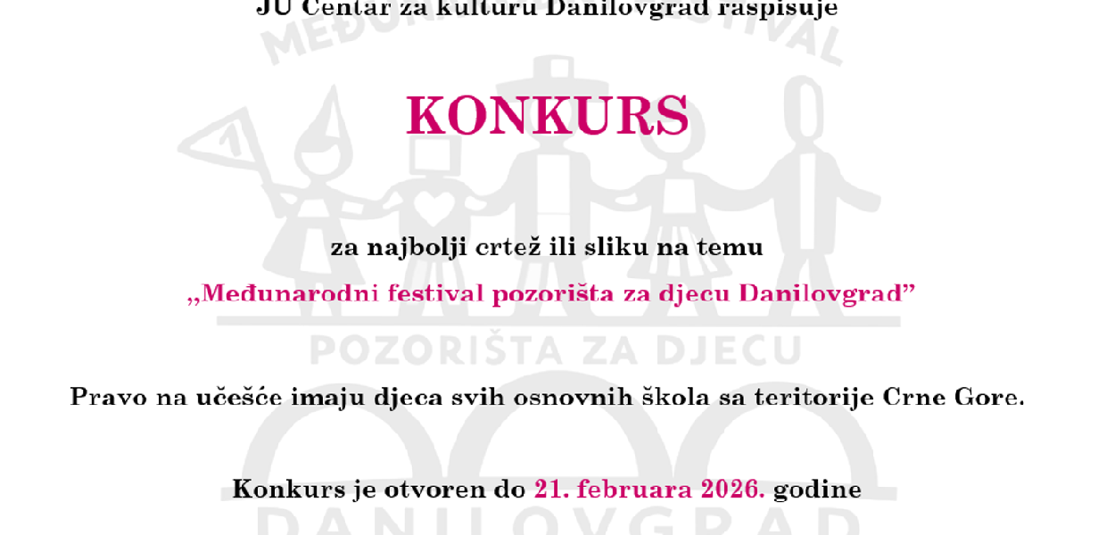 U susret festivalu, Centar za kulturu Danilovgrad raspisuje likovni konkurs za najbolji crtež ili sliku na temu: "Međunarodni festival pozorišta za djecu Danilovgrad". Cilj konkursa je omogućiti djeci da neposredno učestvuju u stvaranju festivala i izraze svoju kreativnost.