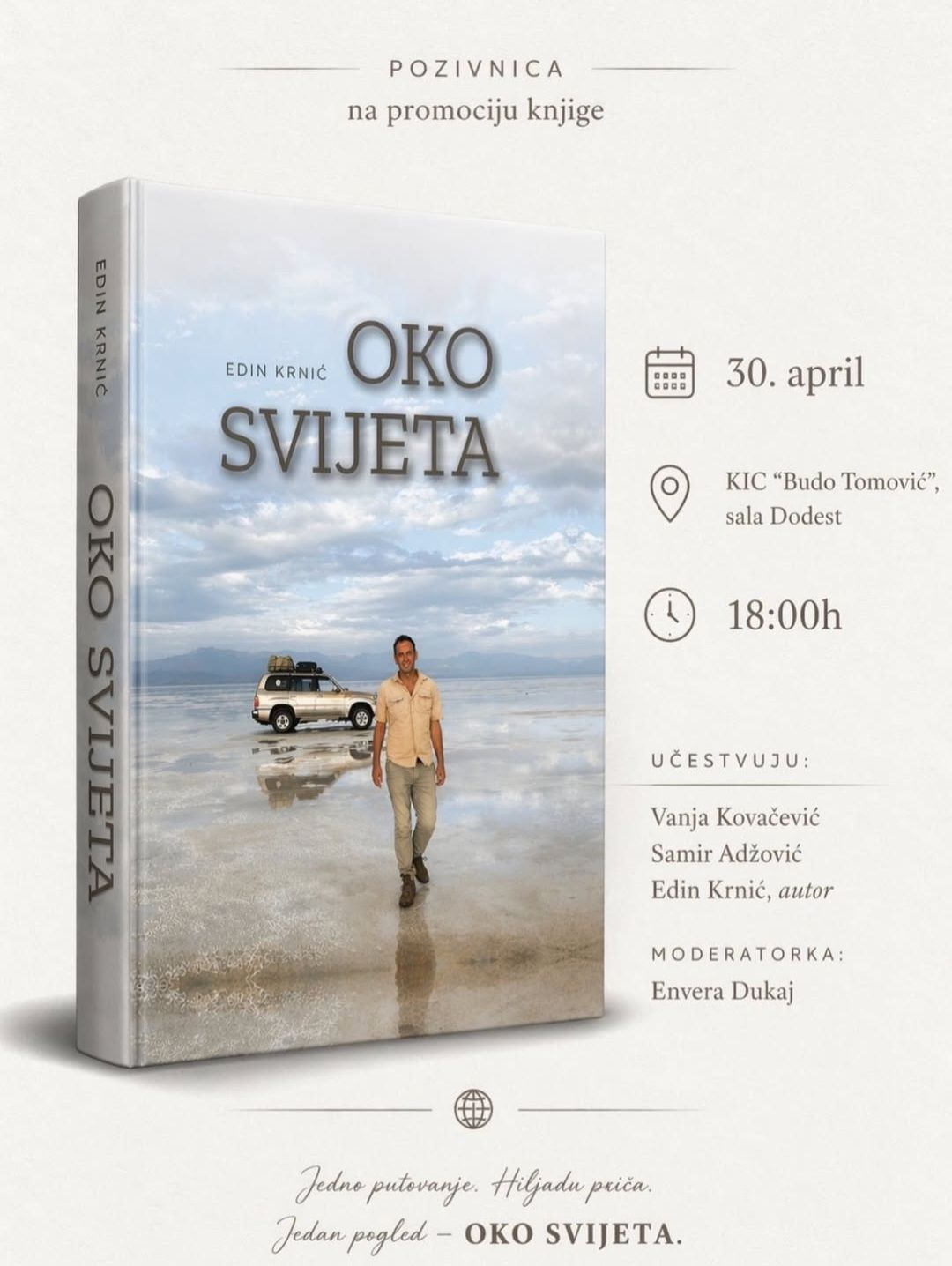 Putopisac Edin Krnić predstaviće knjigu „Oko svijeta“ na promociji koja će se održati 30. aprila u 18 sati, u sali DODEST KIC-a „Budo Tomović“ u Podgorici.