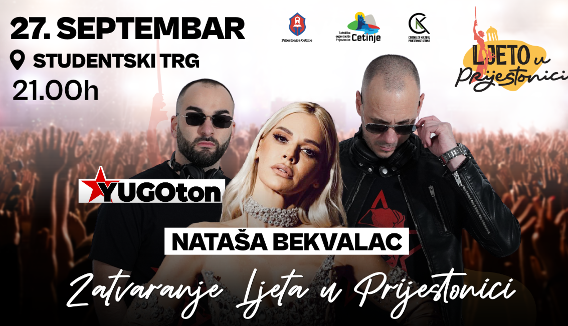 Manifestacija „Ljeto u Prijestonici“ biće zatvorena u subotu, 27. septembra, koncertom jedne od najvećih regionalnih muzičkih zvijezda i kultnog DJ dua Yugoton, saopšteno je iz Kancelarije za odnose sa javnošću Prijestonice Cetinje.