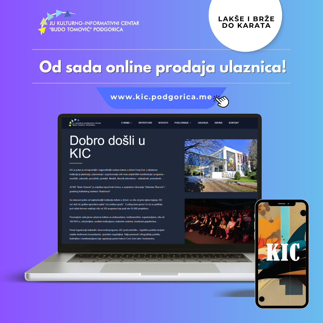 Novi servis omogućava brzo i jednostavno kupovanje ili rezervisanje karata u svega nekoliko koraka, putem zvaničnog sajta KIC-a www.kic.podgorica.me.