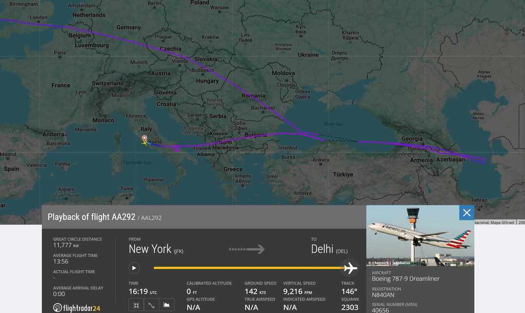 Avion Amerikan Erlajnsa, AAL292 na redovnoj ruti od Njujorka do Delhija, prinudno je sletio na rimski aerodrom Fjumićino, zbog prijetnje da se u avionu nalazi bomba, prenosi italijanski Rai.