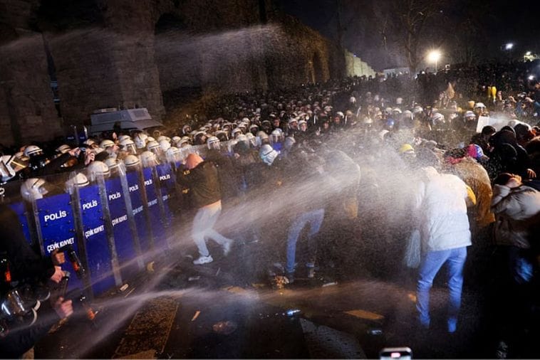 Tri dana nakon hapšenja istanbulskog gradonačelnika Ekrema Imamoglua u ovom gradu organizovani su novi masovni protesti koje predvodi opoziciona Republikanska narodna partija, a kako javljaju turski mediji, stotine hiljada građana okupilo se na trgu Saračane uprkos zabrani okupljanja. Navode da je došlo do sukoba demonstranata i policije.