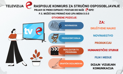 Televizija E raspisala konkurs za stručno osposobljavanje: Prijavi se i postani dio E ekipe