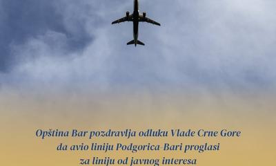 Opština Bar: Avio linija Podgorica-Bari od velikog značaja za razvoj turizma i ekonomije