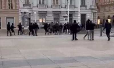 (VIDEO) Tuča maskiranih mladića na Trgu bana Jelačića u Zagrebu, privedeno nekoliko učesnika